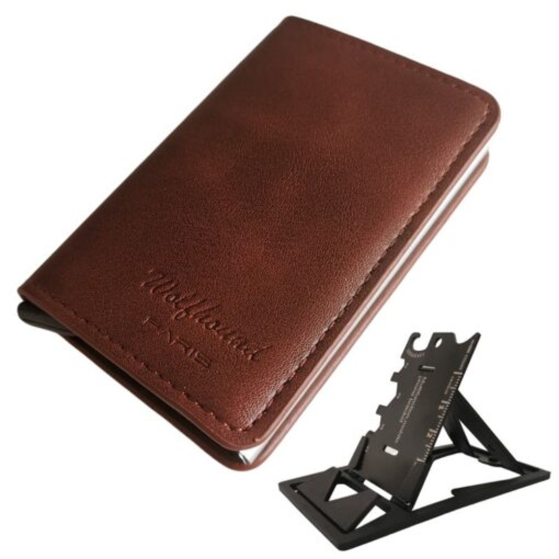 Be the first to review “Credit Card Pop Up Wallets RFID Block Minimalist + Cellphone Stand Foldable Dark Brown”