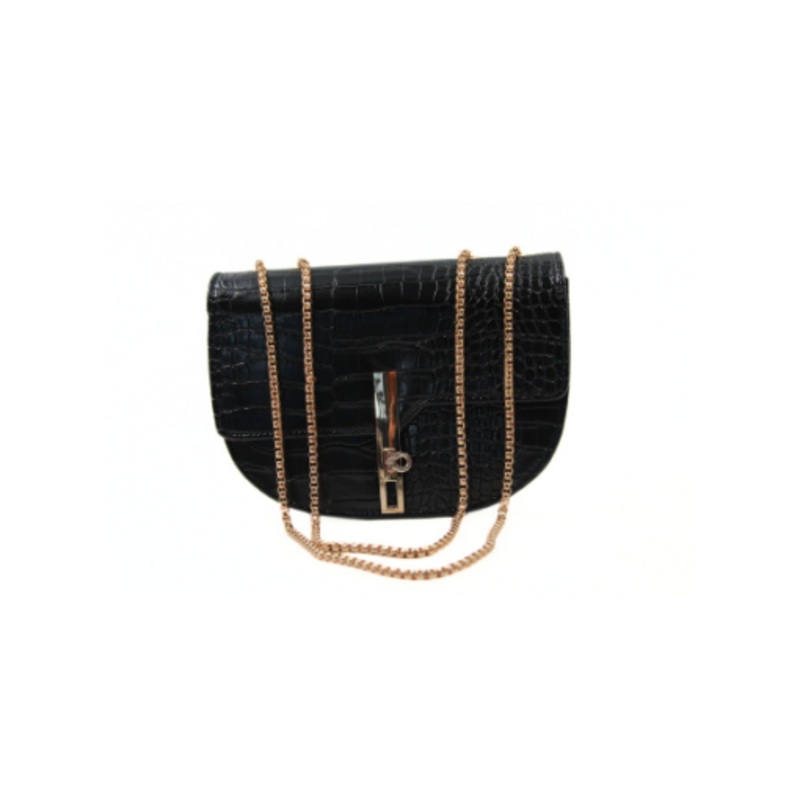 Be the first to review “Crocodile Embossed Crescent Shoulder Bag Black”