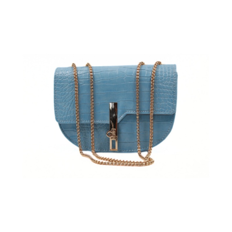 Be the first to review “Crocodile Embossed Crescent Shoulder Bag Blue”