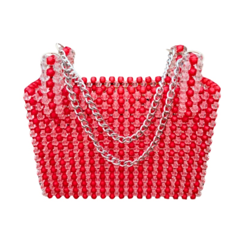 TEEwXcvKn65w9Crystal Beaded PU Leather Handbag For Woman with Chain Strap Red