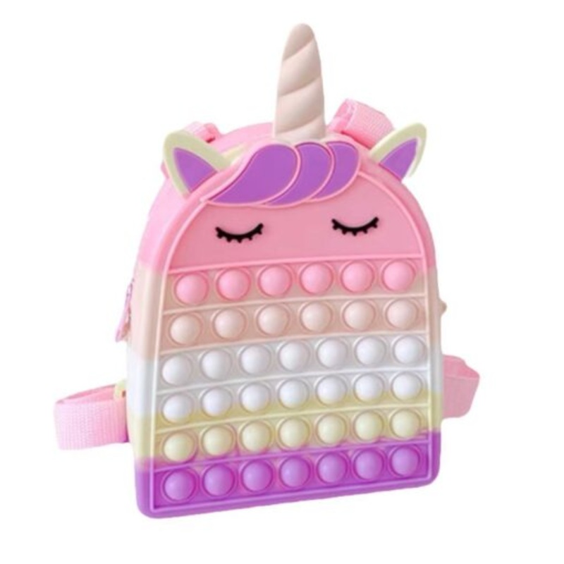 TEEjl3Wj92pkBKids Unicorn Design Colorblock Pop It Backpack White