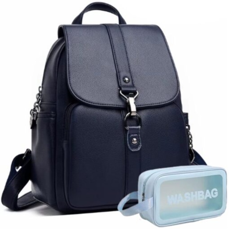 TEERW8ULALAxyLadies Stylish Vegan Leather Anti-theft Backpack With Makeup Bag Simple blue