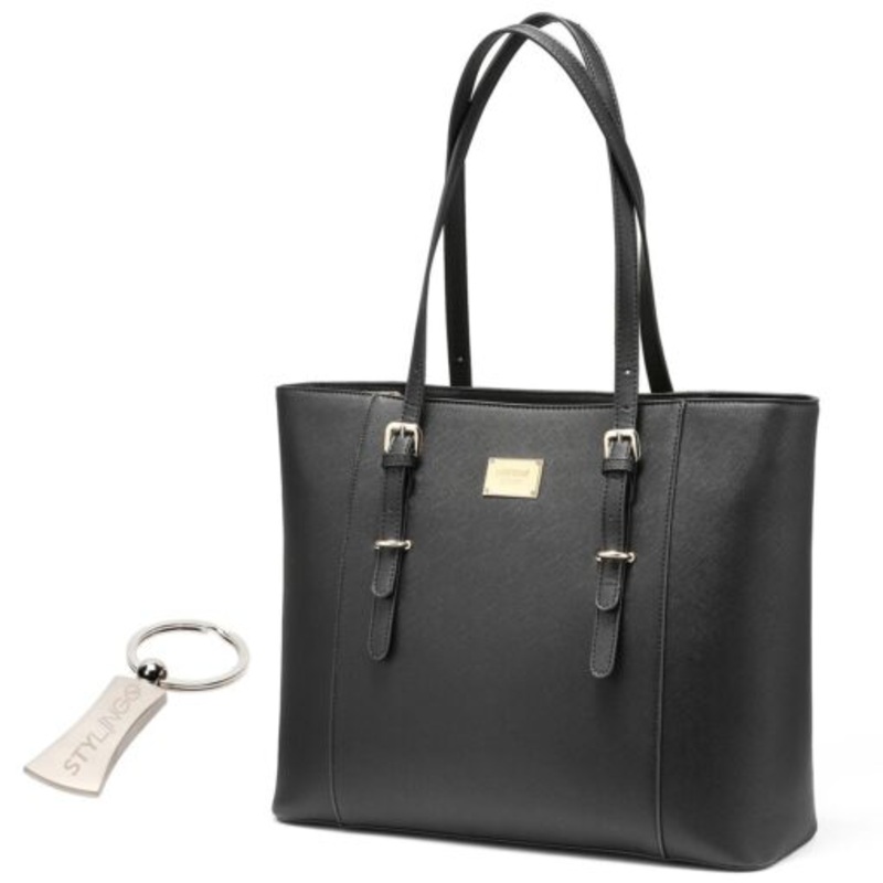 TEEOYYOFyK07LLaptop Bag Ladies Shoulder Bag with Stylingo Keyring 15.6 Black