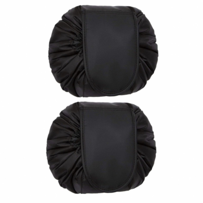 Large Capacity Drawstring Cosmetic Bag Black 2 Pack