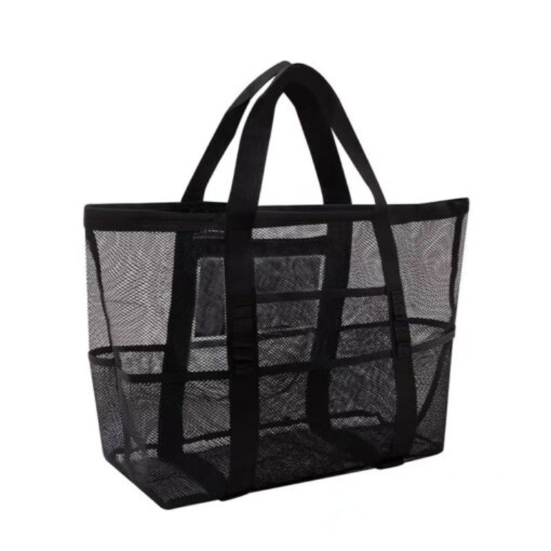 TEEMwU086JzNQLarge Multi-Use Lightweight Mesh Beach Organising Cary Bag Toy Tote Bag Black