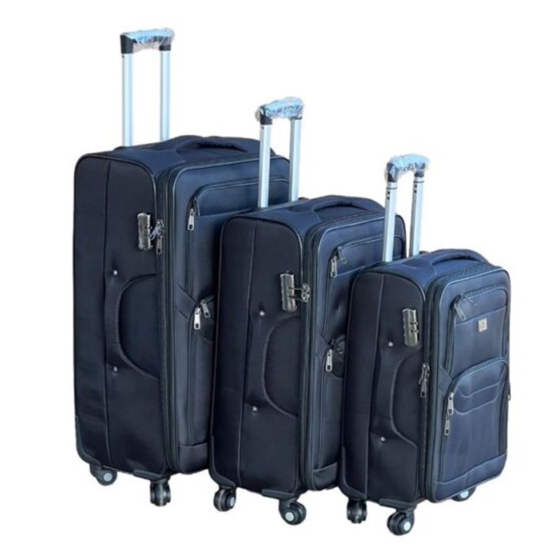 TEEb4cJL3KBL0Le Emporer Fabric 3 Piece Luggage- Double Zip Suitcase Black