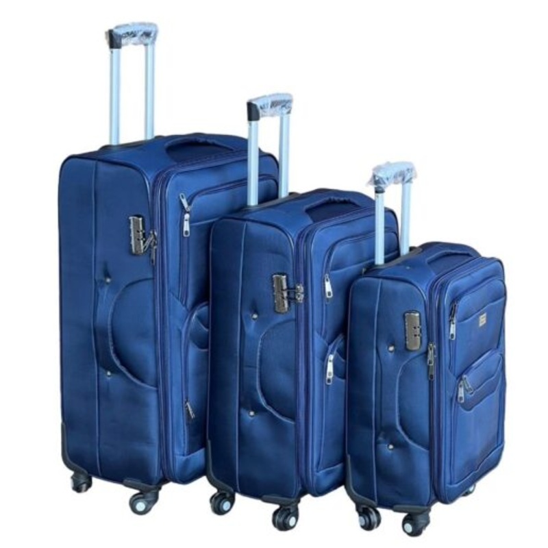 TEEMxwmVAjjVtLe Emporer Fabric 3 Piece Luggage- Double Zip Suitcase Blue
