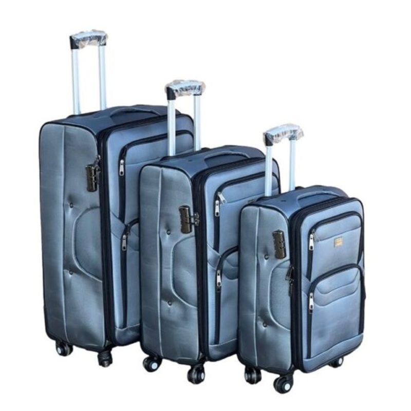 TEEZMKrFCm2sjLe Emporer Fabric 3 Piece Luggage- Double Zip Suitcase Grey
