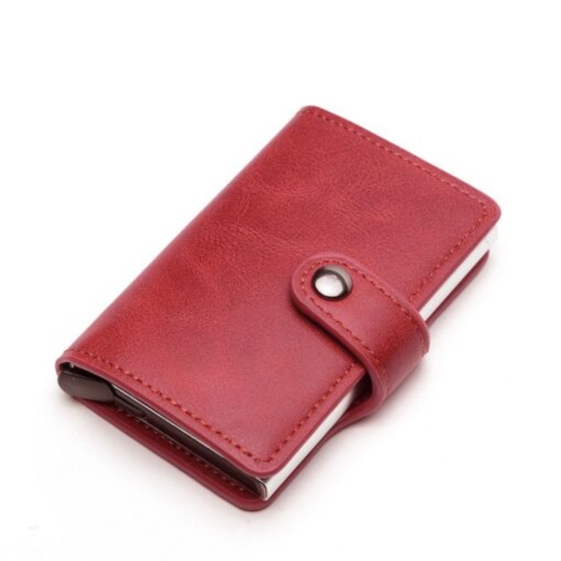 TEEdnImmV4Ut9Leather Aluminium RFID Credit Card Holder Case-Red