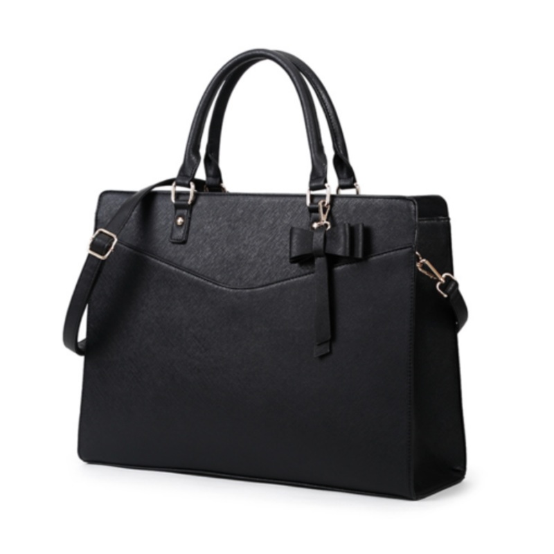 TEEgU2Vu1ocK0Leather Large Laptop 15.6Inch Briefcase Bag Dressing Bow Black