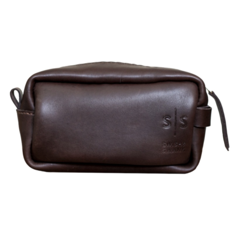 TEEQGfdgNrLqSLeather Toiletry Bag Swish and Swank Chocolate Brown