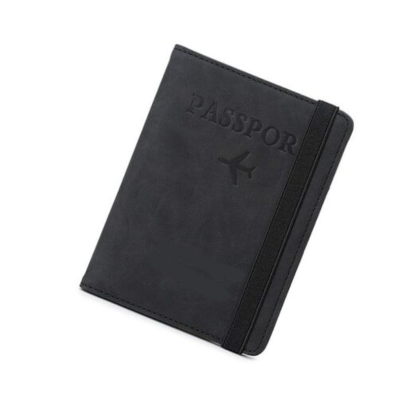 TEEJwbi5FLE34Leather Travel Document Organizer with RFID Protector DC-263A Black