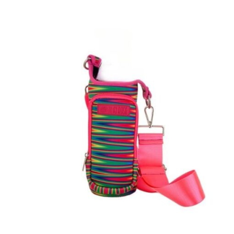 TEEwHsz7QEWH3Lily Rose Collection Neoprene Water Bottle Bag With Cellphone Holder Vibrance MultiStripe & Pink
