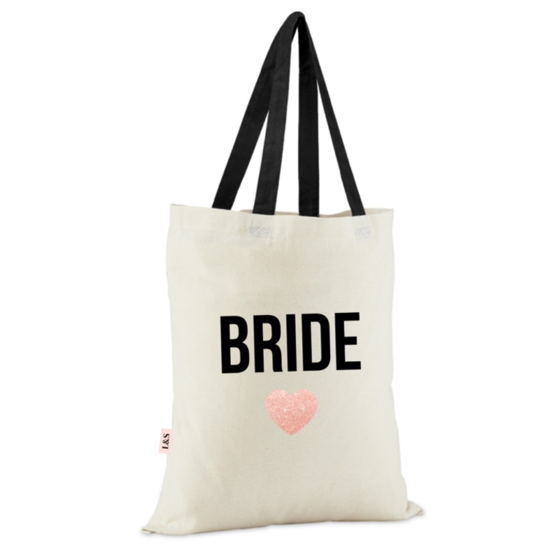 Love & Sparkles Bride Wedding tote bag gift with Rose Gold glitter