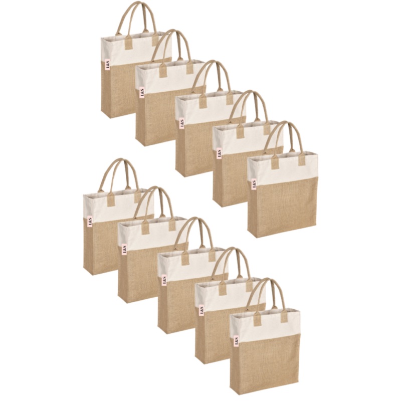 Love & Sparkles Cotton and Jute Shopper Tote Plain Pack 10