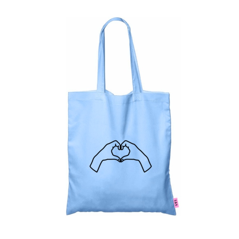 TEEVAEt0REMRALove & Sparkles Premium Colour Cotton Twill Tote Bag with Heart Hand Design Blue