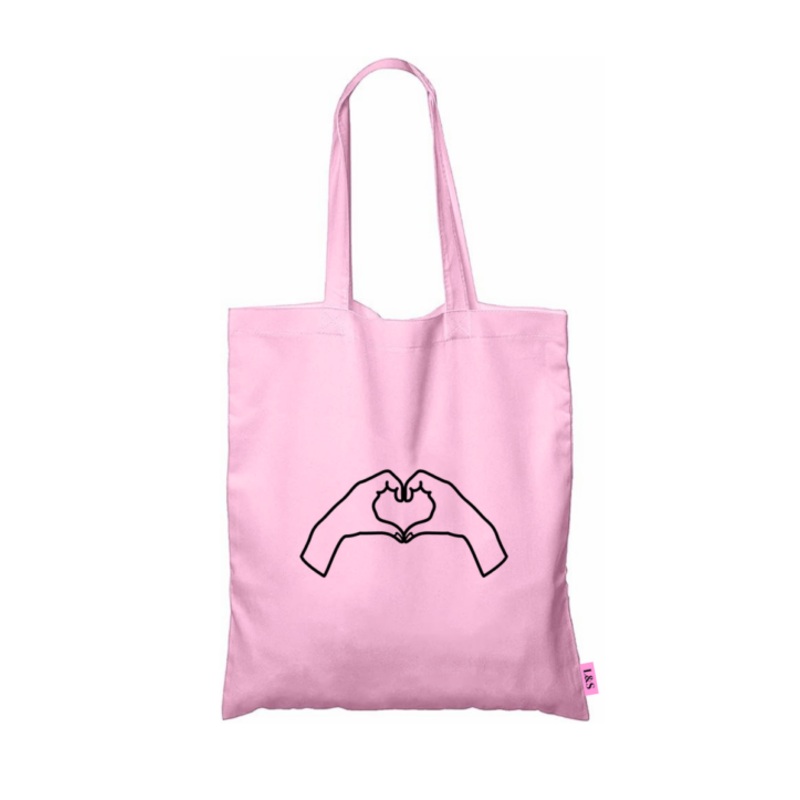 TEEOqP9ujS3N0Love & Sparkles Premium Colour Cotton Twill Tote Bag with Heart Hand Design Pink