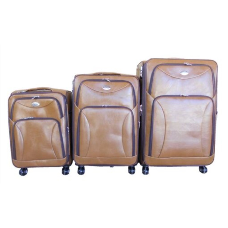 TEEzMAHpnvJHBLuggage Set of 3 PU Leather Travel Suitcases 282422 inch Light Brown