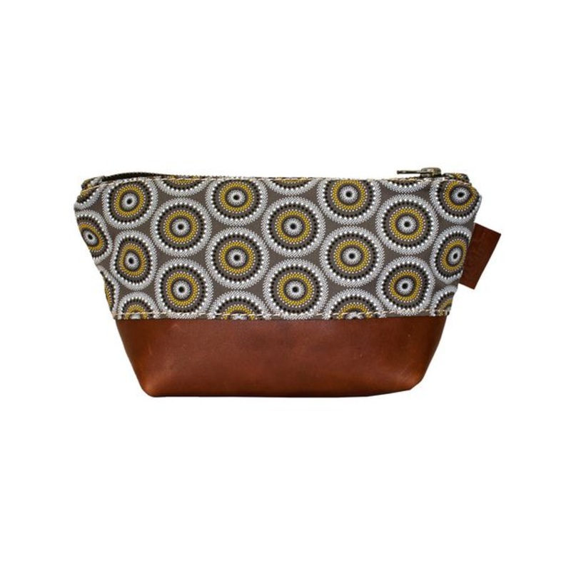 TEEexogWpEpDsLuvsa LS-BS2209 Shweshwe Fabric & Genuine Leather Cosmetic / Toiletry Bag Sun
