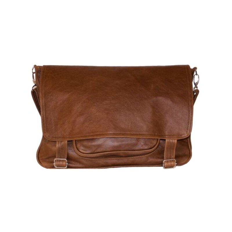 TEETMCTjcanUlLuvsa LS-GB507 Genuine Leather Shoulder Bag with Flap Pocket- Brown