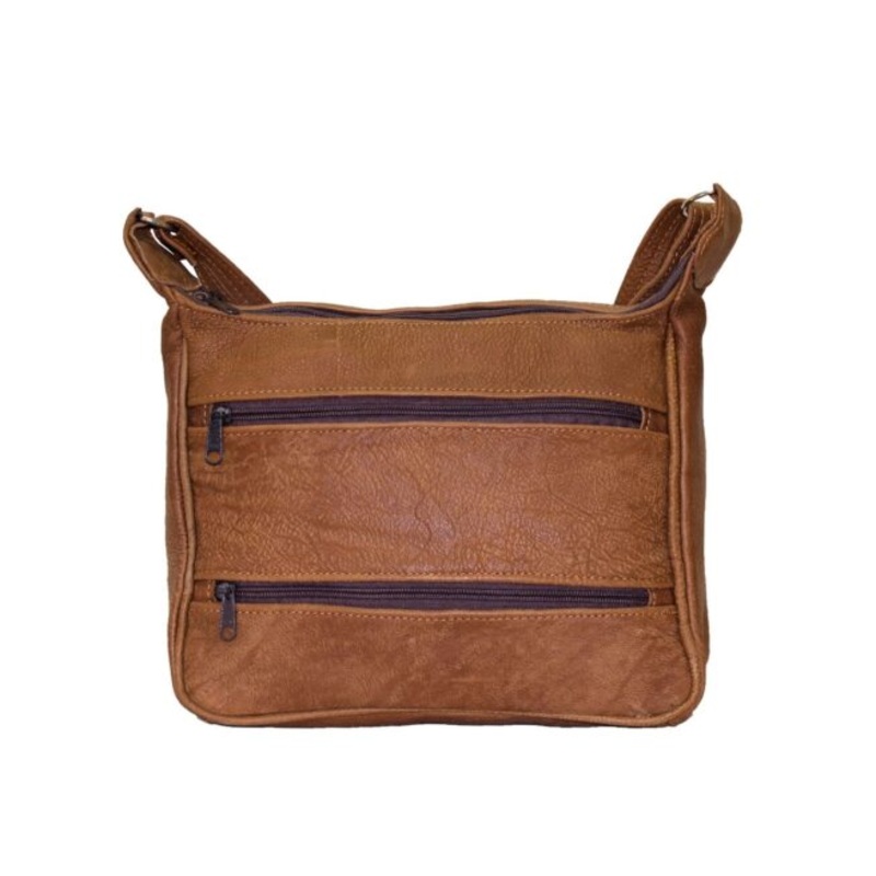 Luvsa LS-GB513 Genuine Leather Shoulder Bag with Front Pockets Brown
