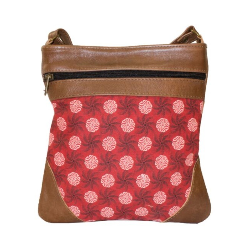 TEEJIJeZKRSxXLuvsa LS-SEN01 Shweshwe Fabric & Genuine Leather Ladies Sling Bag Red