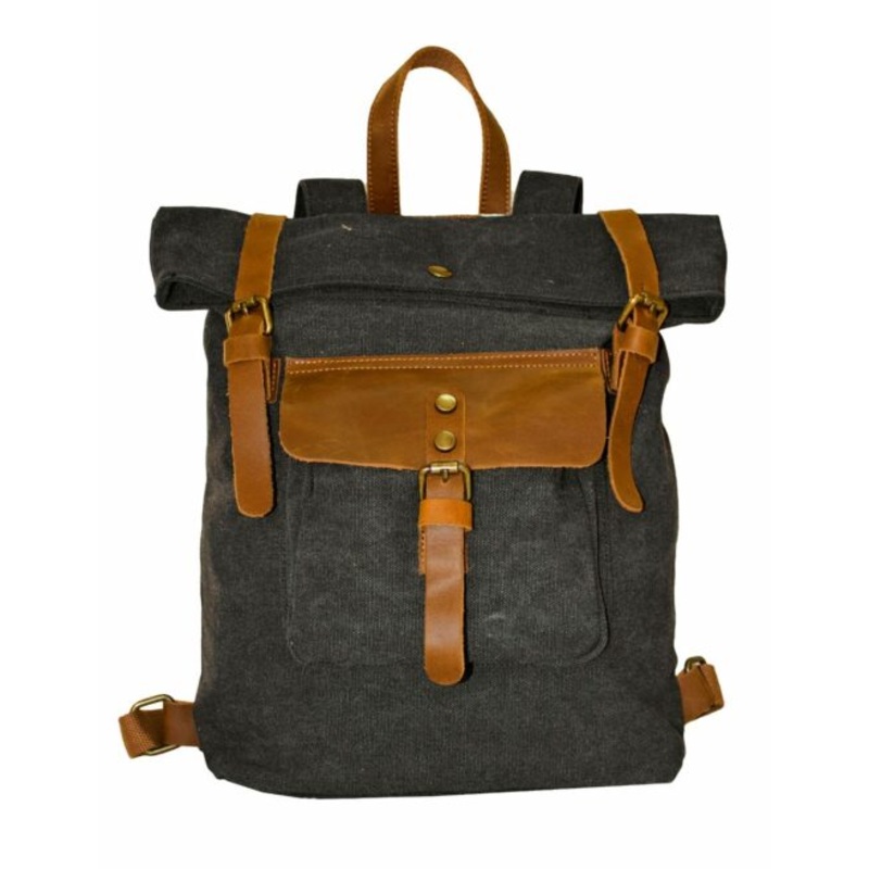 TEExkaSkwZ1dELuvsa SLU-531 Unisex Vintage Canvas and Genuine Leather Backpack Black