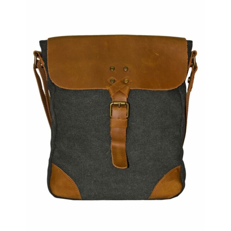 Luvsa SLU-534 Vintage Canvas & Genuine Leather Crossbody Sling Bag Black