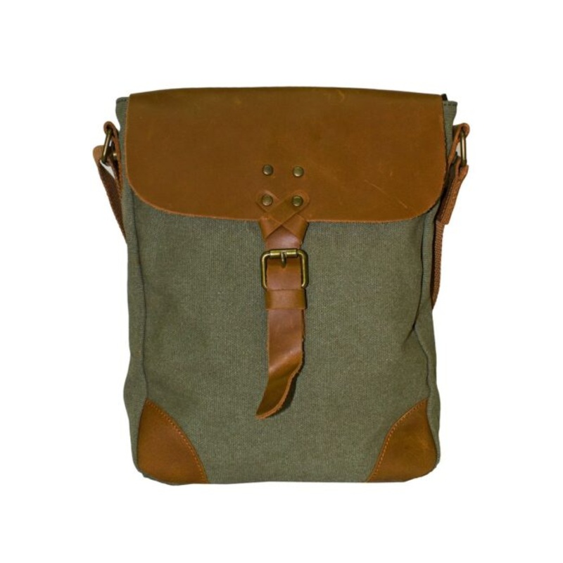 TEElqBUGrxnTILuvsa SLU-534 Vintage Canvas & Genuine Leather Crossbody Sling Bag Green