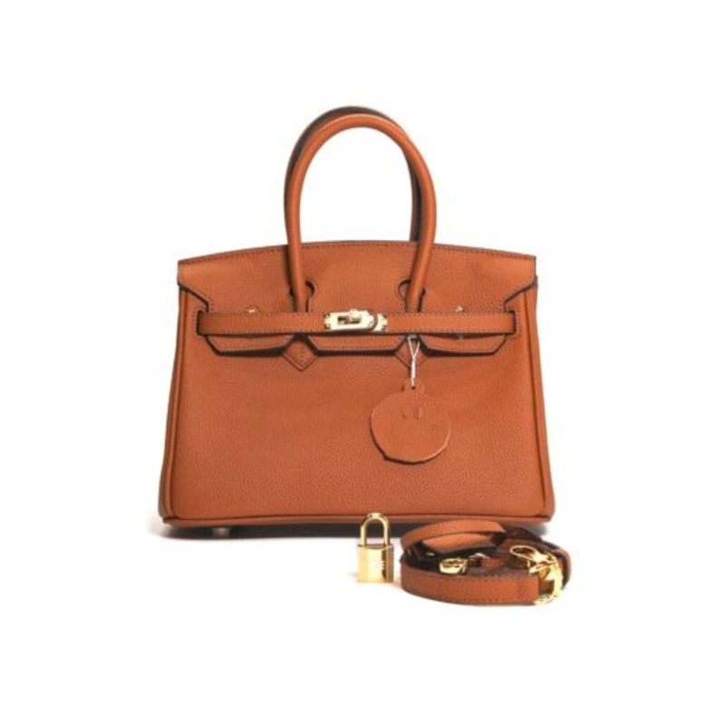Luxury Ladies Tote Design Leather Handbag with Gold Locket Bir25 Sienna