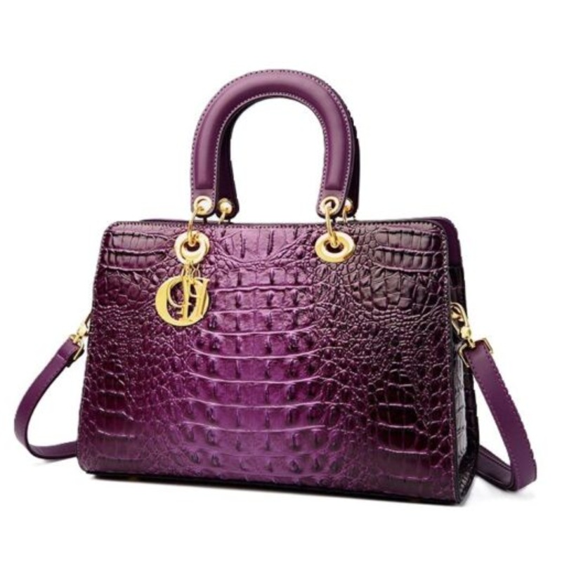TEEAGyB9SHAQsLuxury Womens Patent Crocodile Leather Handbag- Purple