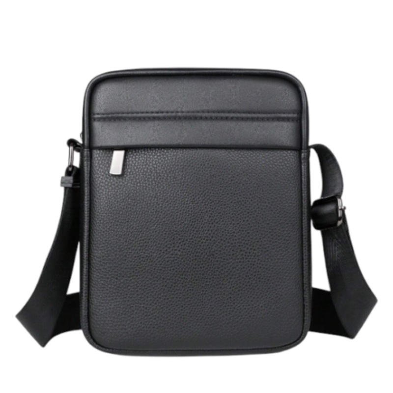 Mens Adjustable PU Leather Square Crossbody Bag Black