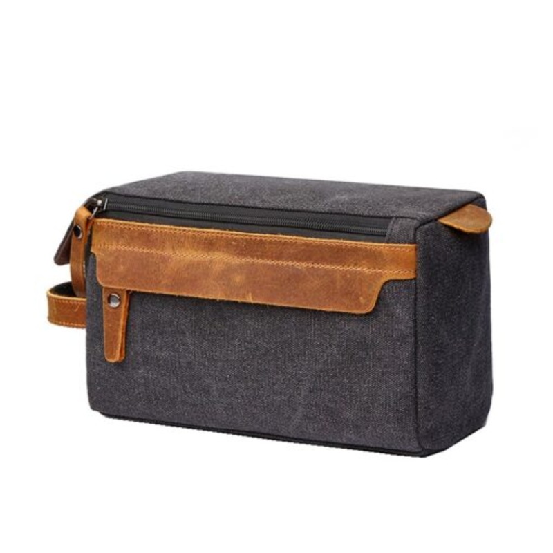 Mens Canvas Cosmetic Toiletry Bathroom Bag Travel Bag Black/Brown