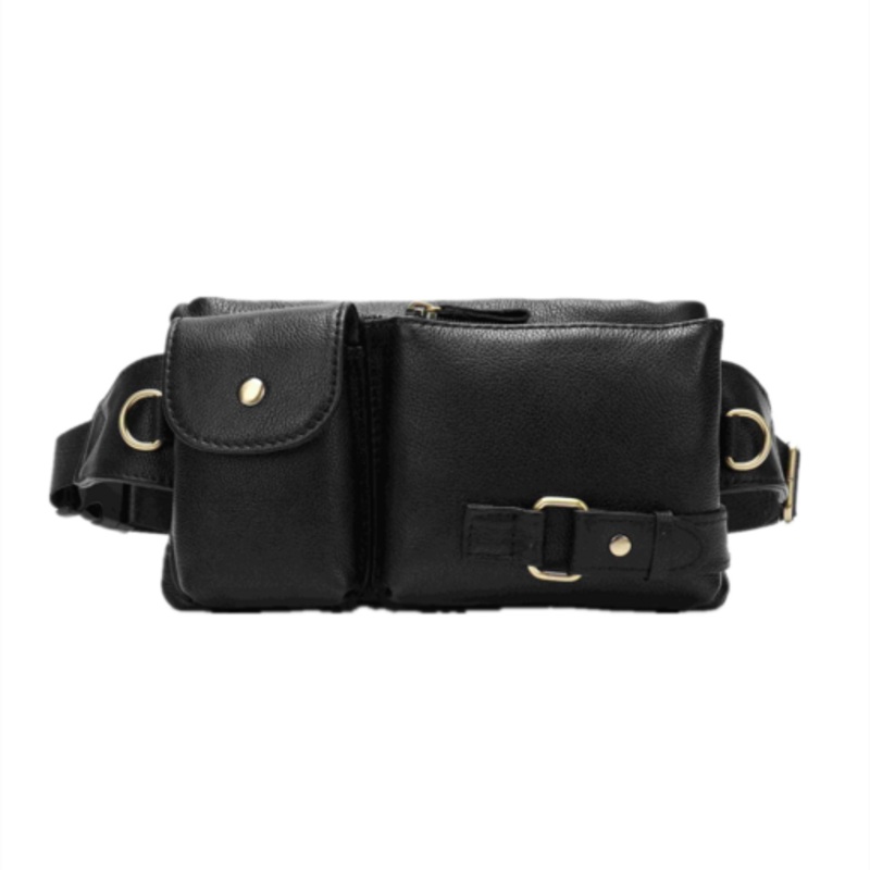 TEEcspK250W37Mens Genuine Leather Waist Bags Vintage Crossbody Hip Purse Black