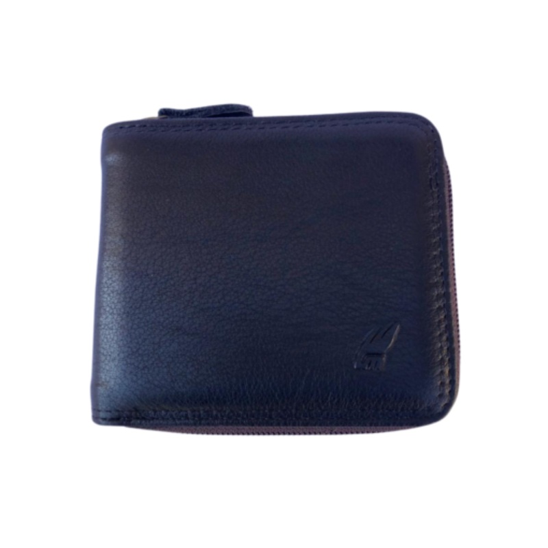 TEELxVCI97a1DMens Genuine Leather Zip Around Bifold Wallet for 6 Cards Camel Mountain Black