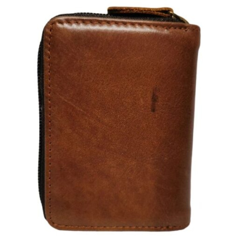TEENZZj782UsxMens Genuine Leather Zip Around Card Holder for 11 Cards Brown