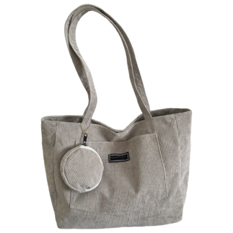 TEEMeqfEpU7FlMinimalistic Corduroy Tote Bag With Attached Mini Round Purse Grey