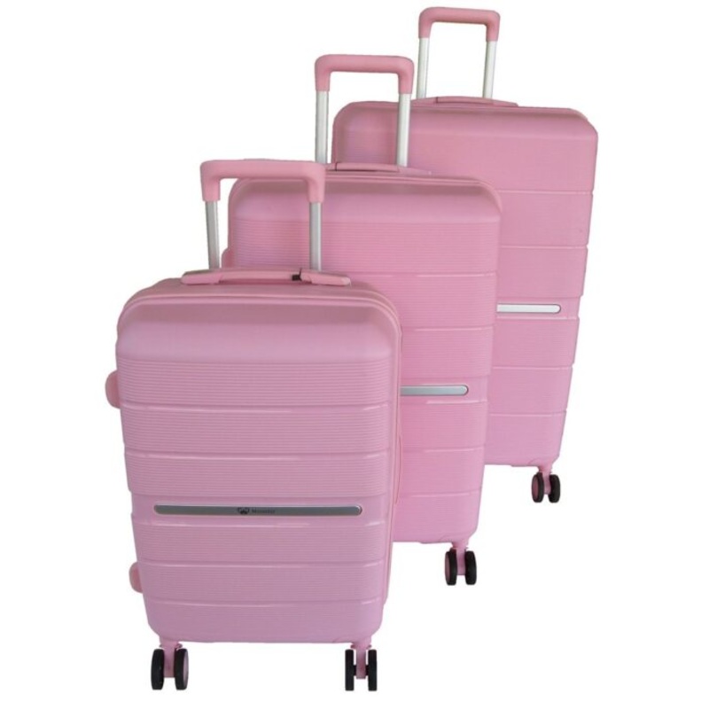 TEEjWuj5fcjGbMooistar Unbreakable Travel Luggage 3 Piece Suitcases Spinner Pink