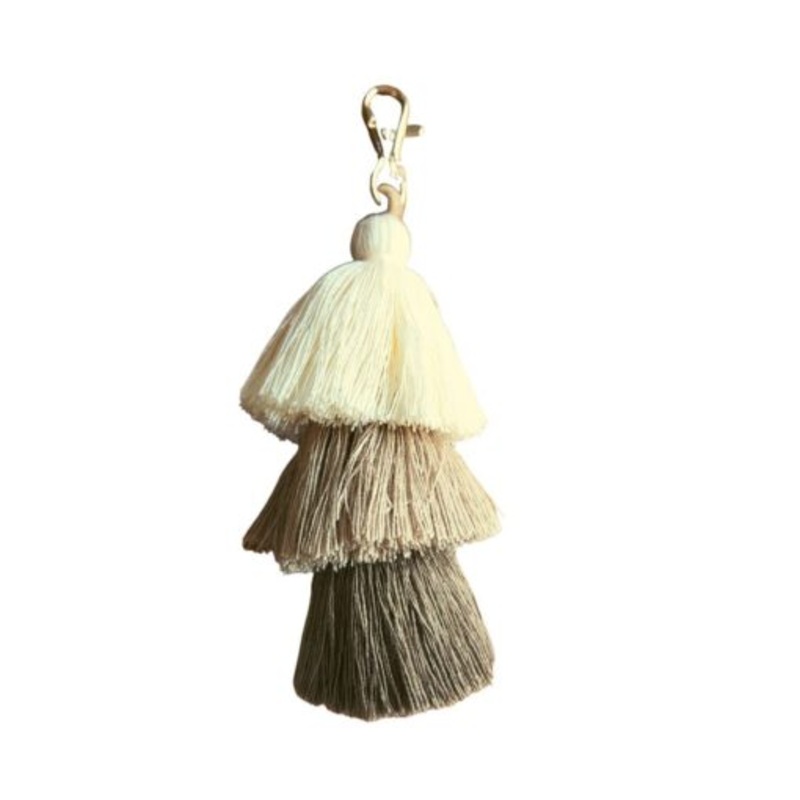 Nordic Scandinavian 3 Shades of Beige Tassel Key Ring/Bag Charm Accessory
