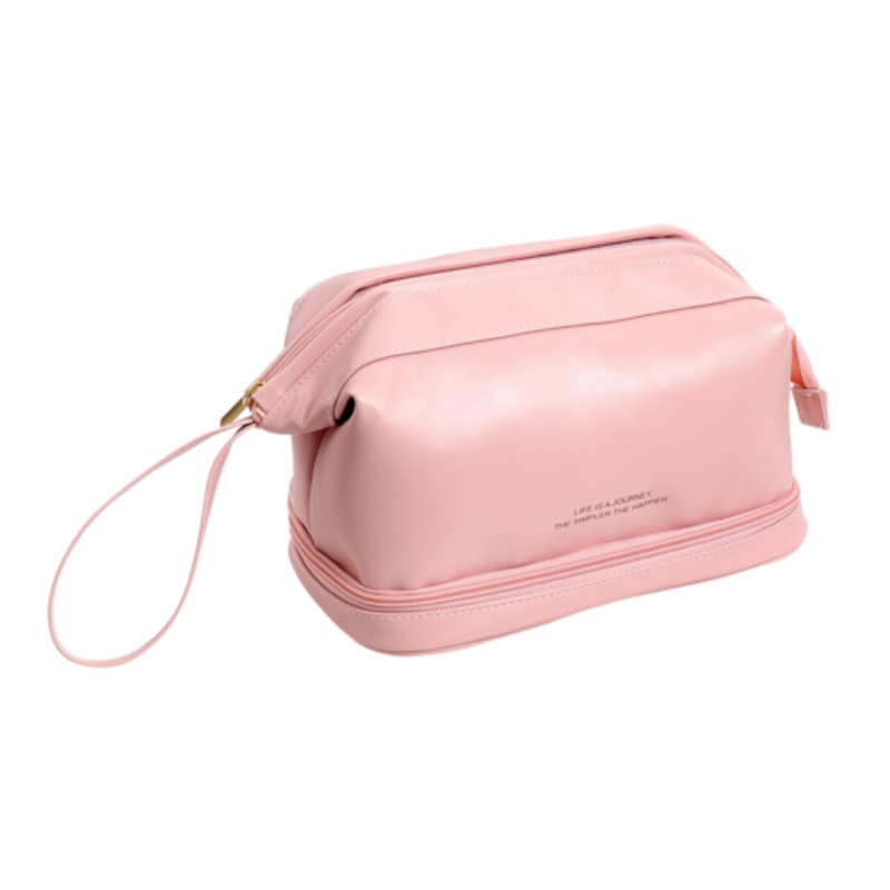 TEExTZk5vqDYtOlive Tree Double Layer Portable Travel Cosmetic Toiletry Bag Pink