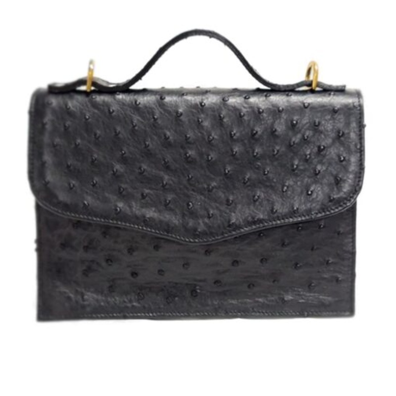 TEEdR2FM7d3v6Ostrich Leather Clutch Sling Handbag Black