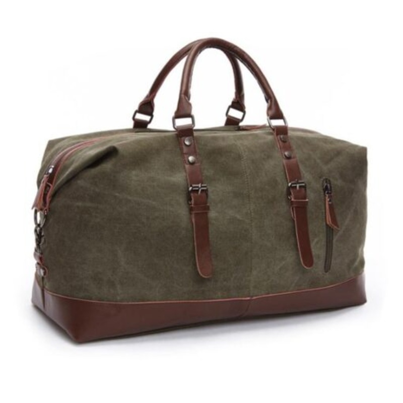 TEELkxeEyeXmCOversized Leather Canvas Duffel Shoulder Overnight Bag Army Green