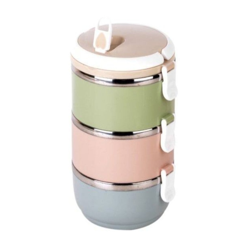 Portable Thermal Insulated Stainless Steel Triple Layer Lunch Box
