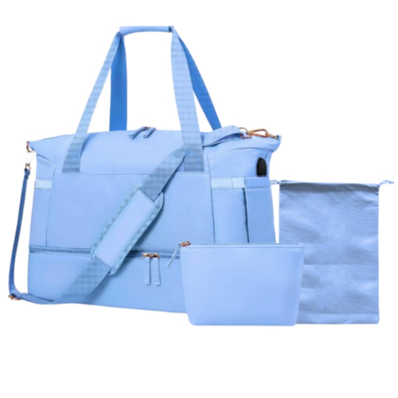 TEEhm3hhfWxlMPremium 3 Piece Travel Tote Set with Bottom Shoe Compartment Blue