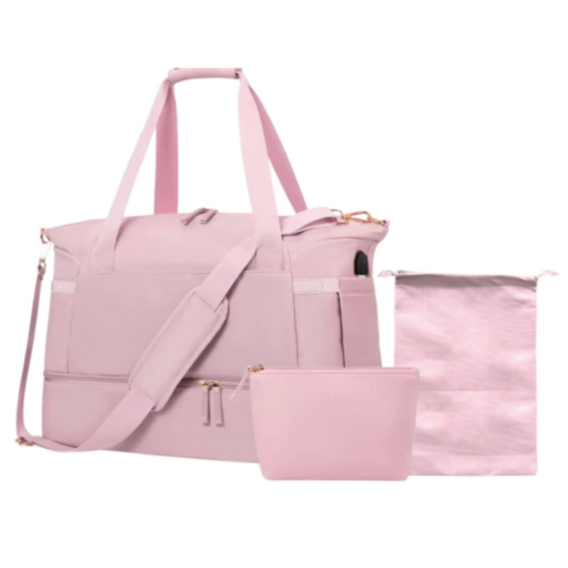 TEED1OSD00RIzPremium 3 Piece Travel Tote Set with Bottom Shoe Compartment Pink