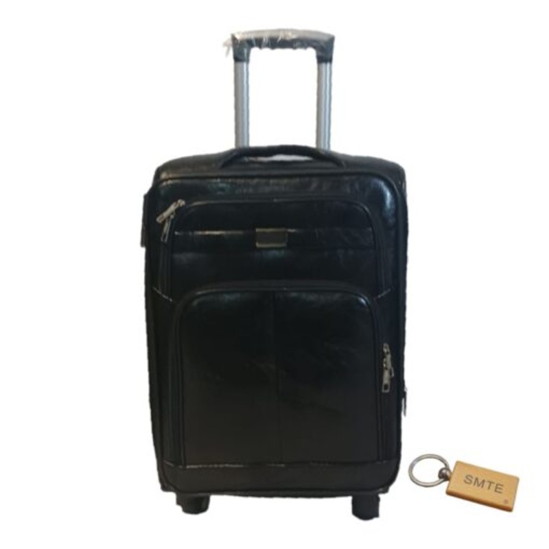 TEEGKHuNpZOd8Premium Leather Suitcase Small 55cm with Smte Keyring 1 Piece Black