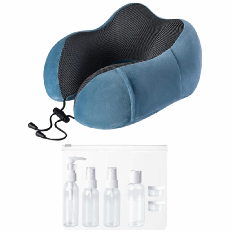 TEE6pXIRX4CAYPremium Memory Foam Neck Pillow plus Travel Bottle Set Blue