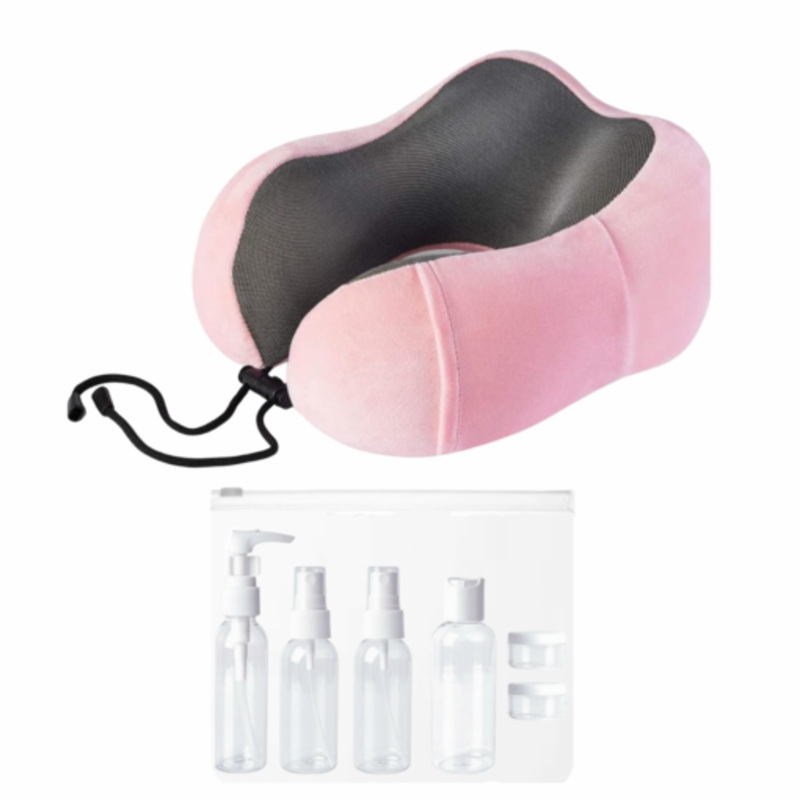 TEEusMBBvOBwtPremium Memory Foam Neck Pillow plus Travel Bottle Set Pink