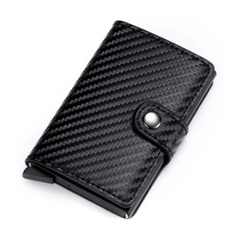 TEEdku1etab0fPremium PU Carbon Fiber RFID Blocking Pop-Up Credit Card Holder Slim Wallet