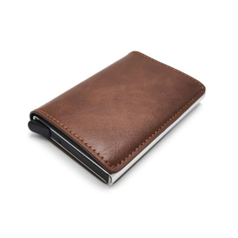 Premium Quality Pop Up Credit Card Holder Wallet RFID Blocking & Money Clip Brunette